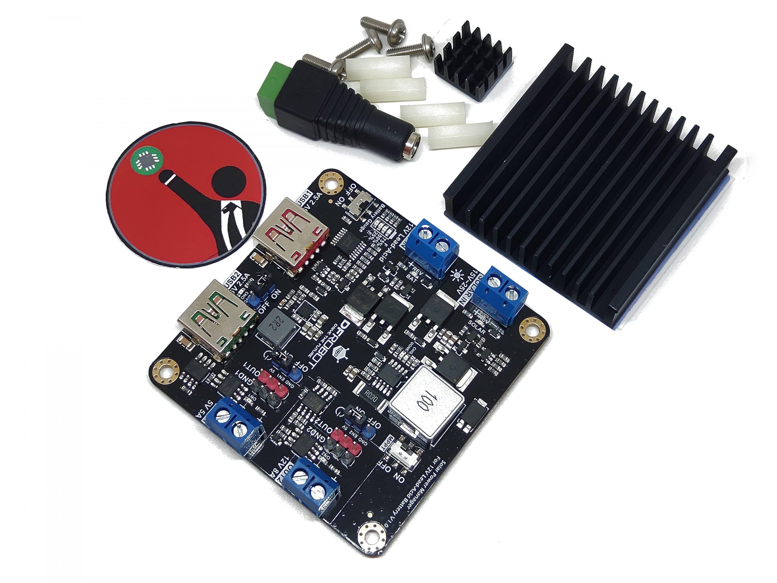 Solar Power Manager para batería de plomo-ácido de 12V es un módulo de administración de energía solar de alta eficiencia y potencia media, que puede cargar una batería de plomo-ácido de 12V con un máximo de 4A usando un panel solar estándar de 18V. Es adecuado para aplicaciones dentro de 100 W, como equipos de iluminación de 12 V, monitoreo de seguridad, robots pequeños , bombaso estaciones de monitoreo ambiental. Cuenta con la función MPPT (seguimiento del punto de máxima potencia), maximizando la potencia de salida de los paneles solares bajo diferentes rayos solares. En comparación con los controladores solares PWM comunes, puede mejorar el rendimiento de carga en un 10% -30%. Beneficiado por su pequeño tamaño y peso ligero, es más fácil incrustarlo en sus proyectos. El módulo proporciona salidas duales de alta potencia 5V 5A (OUT1) y 12V 8A (OUT2) y salidas USB duales 5V 2.5A (USB1 / USB2). Excepto USB1, todas las salidas se pueden ENCENDER / APAGAR mediante pines de E / S de la mayoría de los controladores (compatible con 3.3V / 5V). Esta característica ayuda a alimentar dinámicamente las cargas y reducir el consumo de energía. También se emplean diversas funciones de protección para garantizar la seguridad y la estabilidad de los sistemas solares.